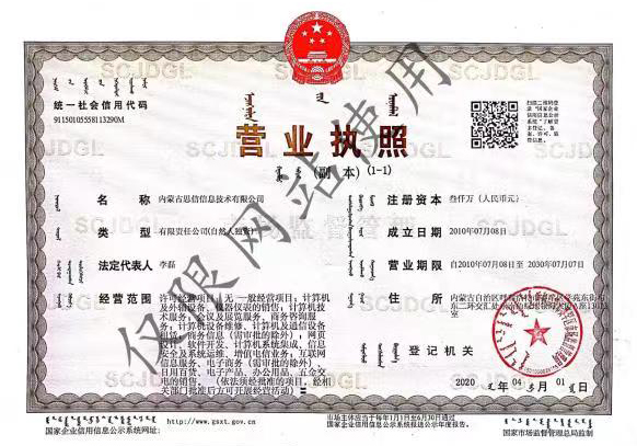 增值电信许可证 蒙B2-20200070